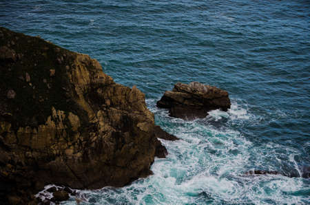 A scenery of a rock formation near the ocean in Asturias, Spain