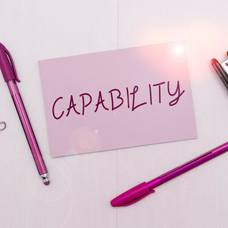 Hand writing sign Capability. Business concept the facility or potential for an indicated use or deployment
