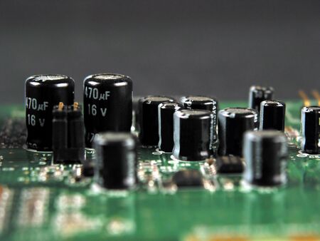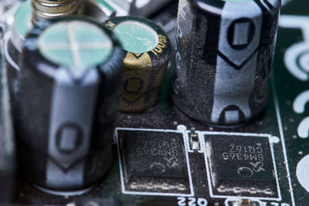 Closeup electronic hardware Capacitor on the circuit board