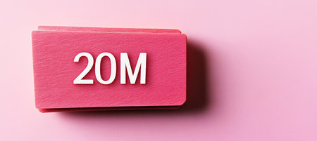 Stacked Red Sticky Notes with 20M Text on a Pink Background, Business Target and Goal Concept