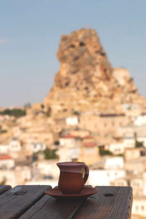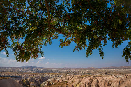 Travel to Turkey - observation deck on the Aktepe Hill and valley in Nevsehir province in Cappadocia, Anatolia.