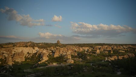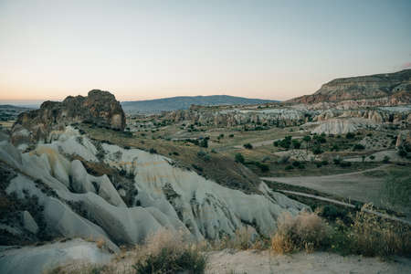 Beautiful landscape of Cappadocia plateau in a morning sunrise, Central Anatolia in Turkey, Asia