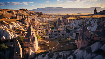 Generative AI : Panoramic aerial view of Uchisar Castle in Uchisar old town Cappadocia Nevsehir Turkey