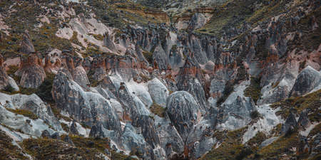 The sharp cones of rock formations boasts unique colors and shapes, Cappadocia, Turkey