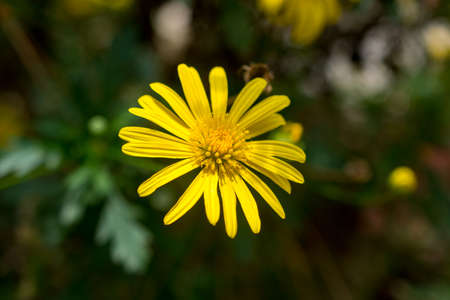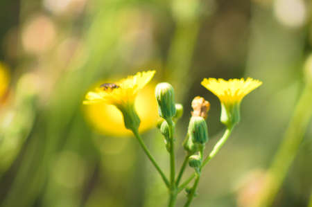 Common nipplewort in bloom close-up view with blurred green plants on background