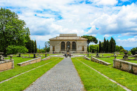 June 3, 2016 - Caprarola, Viterbo, Lazio, Italy - Villa Farnese, Renaissance and Mannerist construction. Garden of the villa with the Casino, statues and fountains. People and families visit the park.