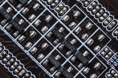 Electronic circuit board close-up. Electronic computer hardware technology.