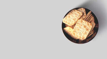 Close up view Isolated Crackers on grey background. added copy space for text.