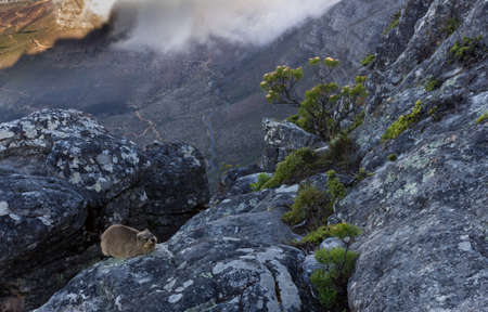 Cape hyrax, Hyrax capensis, also known as a rock dassie, on Table Mountain, Cape Town, South Africa.