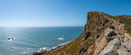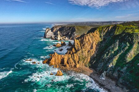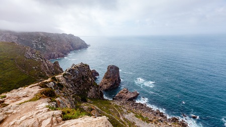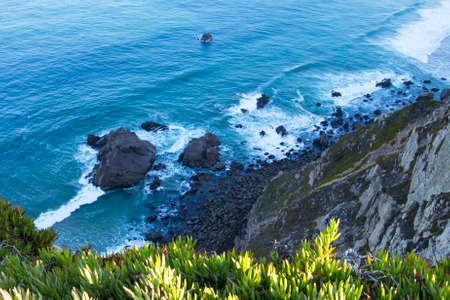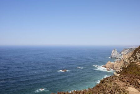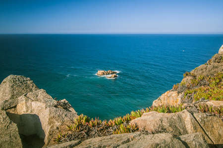 Beautiful view of the Atlantic Ocean from the western point on Cape Roca in Portugal.