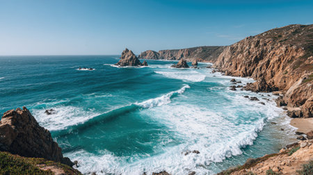 Experience the beauty of a pristine coastline with breathtaking cliffs and vibrant ocean waves. This serene landscape captures nature's tranquility and adventure.