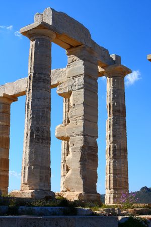 The Temple of Poseidon and blue sky. Cape Sounion, Greece