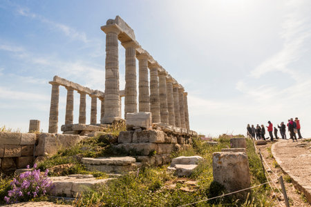 Greek temple Poseidon during spring time, Cape Sounion in Greece