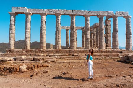 Greece Cape Sounion. Ruins of an ancient temple of Poseidon. Travel destinations.