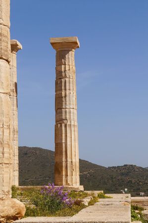 Greece Cape Sounio. Ruins of an ancient temple of Poseidon, Greek god of the sea