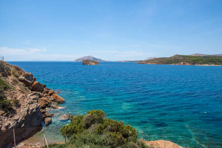 Southern Greece Mani Peninsula. Sea landscape rocky coastline, Peloponnese.