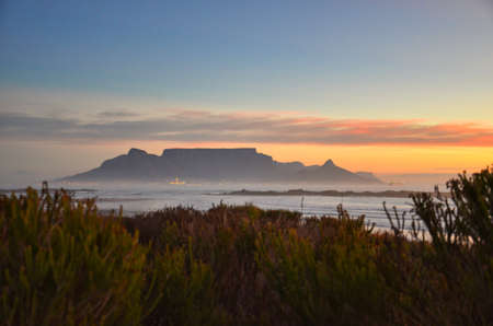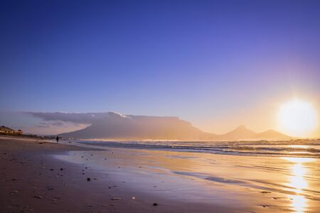View of Table Mountain at sunrise from Milnerton Beach, Cape Town, South Africa