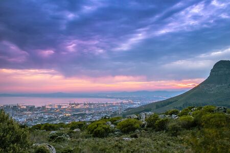 Looking down on the sunset over the Cape Peninsula and Cape Town from Lion's Head Mountain