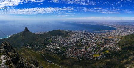 Panoramic view of Cape Town seen from main view point on Table Mountain