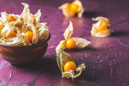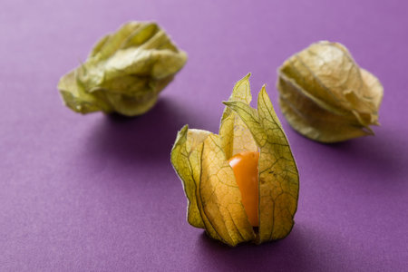 fresh natural physalis berry on violet background