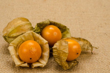 Image of cape gooseberry on brown sack background