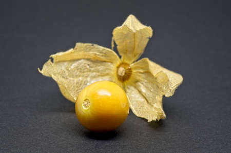 Fresh physalis on grey background. raw sweet small fruit.