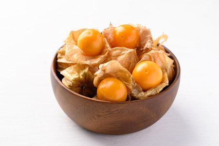 Cape gooseberry, Goldenberry or Physalis peruviana in bowl on white background