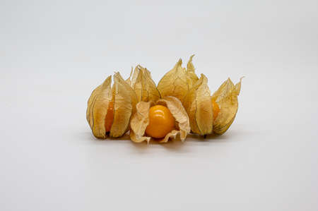 Ripe physalis berry isolated on white background. Close-up macro