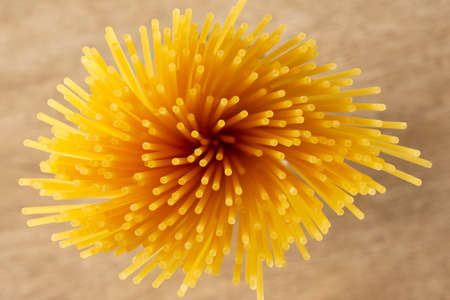 Uncooked spaghetti top view close up horizontal photo