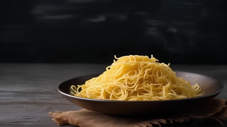 Thin long spaghetti on black background as a food background concept.