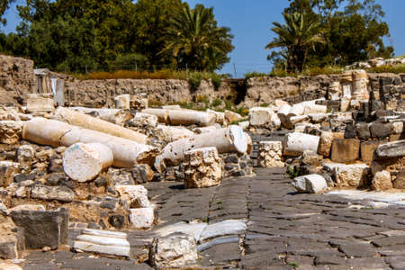Fallen columns at Beit She'an in Israel