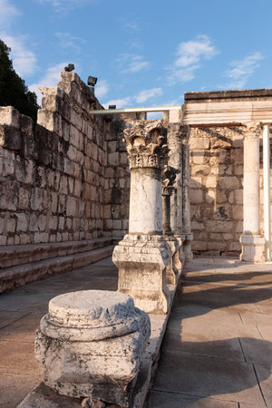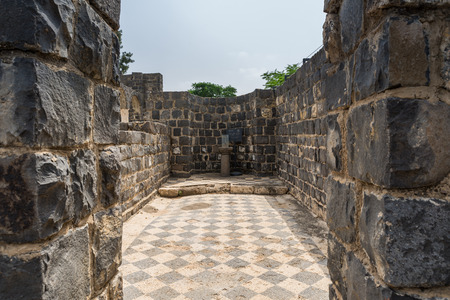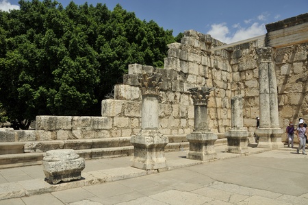 TIBERIAS - JUNE 19:The ancient synagogue in Capernaum on June 19 2009 in Kfar Nahum near Tiberias, Israel.It's among the oldest synagogues in the world.