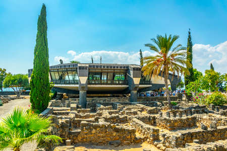 CAPERNAUM, ISRAEL, SEPTEMBER 15, 2018: View of a modern church inside of the Capernaum complex in Israel