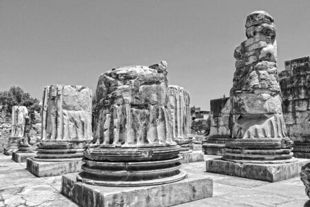 beautiful old ruins of the ancient temple of Apollo in Didim, Turkey on a hot summer day