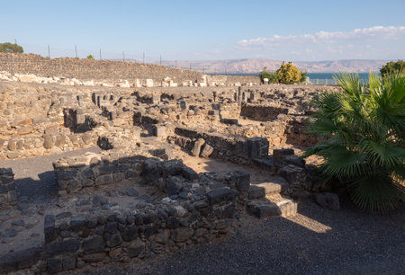 Ruins of the old village of Capernaum on the coast of the Sea of Galilee, Israel.