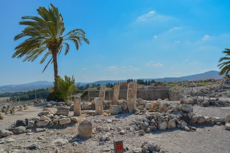 Archaeological remains in Tel Megiddo National Park. At Jezebel Valley, Northern Israel