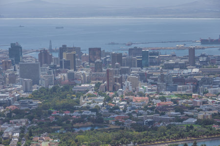 CAPE TOWN, SOUTH AFRICA - DECEMBER 18, 2014: The harbor and central business district as seen from Table Mountain Road