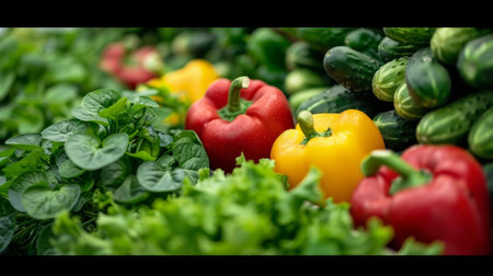 Leafy greens and vibrant bell peppers laid out with copy space for your message