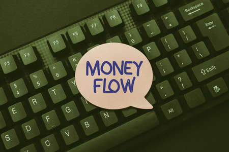Writing displaying text Money Flow. Business idea it is an indicator of positive or negative in a current day Online Browsing And Exploring, Creating Blog Content, Sending New Messages