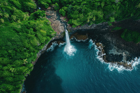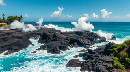 Generative AI : Aerial view of Terceira Island coastline on Azores archipelagos Portugal