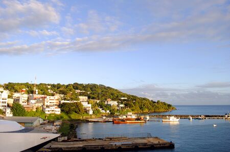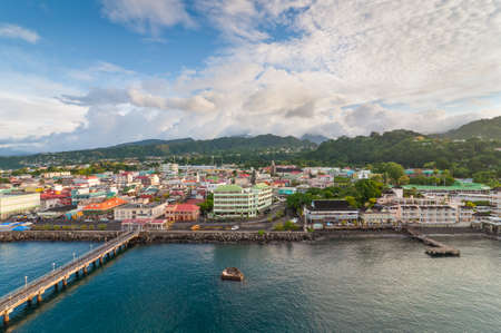 Roseau, Dominica - December 4, 2011: A panorama of Roseau, capital of Dominica, taken from a ship overlooking the city.
