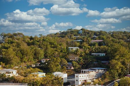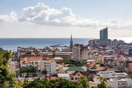Fort-de-France, Martinique - December 19, 2016: Cityscape in cloudy weather of Fort-de-France, Martinique, Lesser Antilles, West Indies, Caribbean. View from the cruise ship.