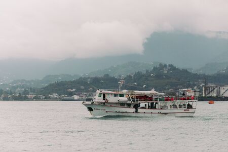 BATUMI, GEORGIA - September 10, 2018: yacht in the Black Sea on a cloudy day in Batumi