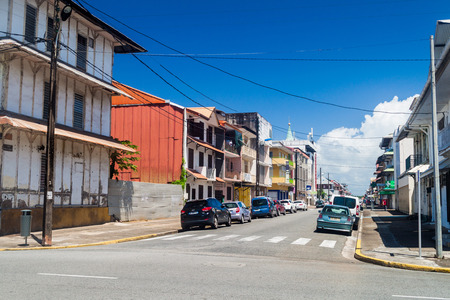 CAYENNE, FRENCH GUIANA - AUGUST 3, 2015: View of a street in the center of Cayenne, capital of French Guiana.