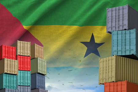 20 Dominican peso bills lies in stack on background of big semi-transparent banknote. Abstract business background with copy space