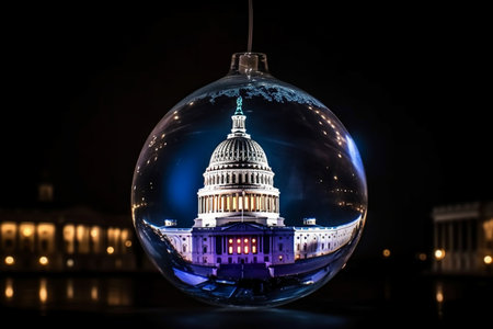 Glass ball with dome of United States Capitol Building at night, Washington DC