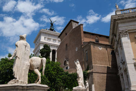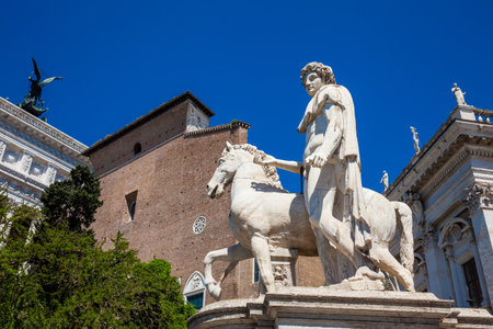 Monument in Rome, Italy. Dioscuro statue in Capitoline Hill.