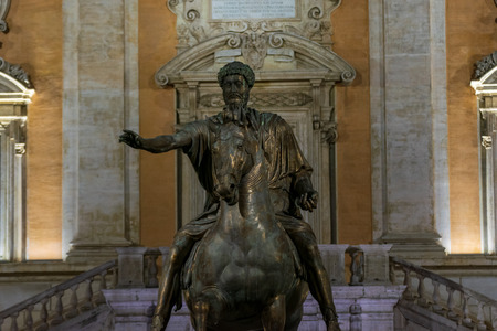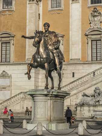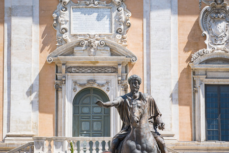 The replica of the statue of the Emperor of Marcus Aurelius in Piazza del Campidoglio, Rome