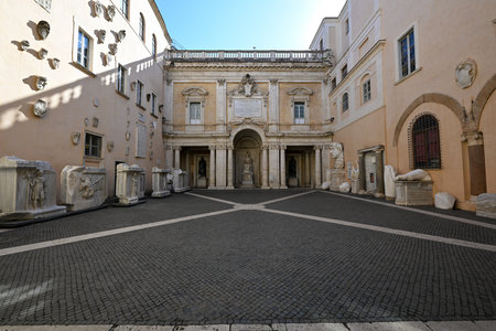 ROME, ITALY - OCTOBER 31, 2016: interior of Capitoline Museums in Palazzo Nuovo (New Palace) in Rome city. Art and Archeological museums are on Piazza del Campidoglio.