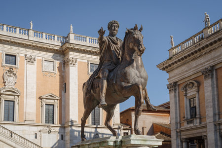 Equestrian statue of Marcus Aurelius on a Capitoline hill in Rome, Italy